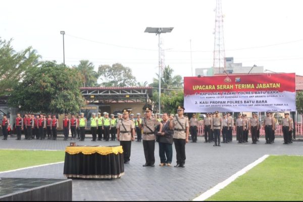 Batu Bara, Kapolres Batu Bara, AKBP Doly Nelson H.H. Nainggolan, memimpin langsung upacara serah terima jabatan (sertijab) Kapolsek Talawi dan Kasi Propam Polres Batu Bara yang dilaksanakan pada Rabu (16/04/2026) pukul 08.00 WIB di Mako Polres Batu Bara. Dalam upacara tersebut, jabatan Kapolsek Talawi resmi diserahterimakan dari Kompol Cecep Suhendra kepada pejabat baru AKP Arianto…