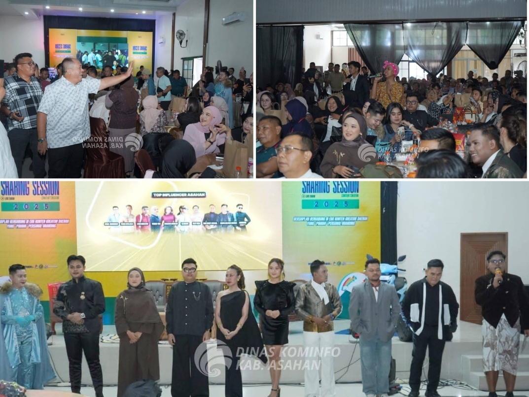 Kegiatan Sharing Session Content Creator bertema “Bersiap Bergabung di Era Konten Kreator Daerah: Paham Personal Branding” diselenggarakan oleh Tengah Malam Production di Aula Gedung Mutiara Kisaran dan diikuti ratusan kreator lokal, komunitas kreatif, serta pelaku UMKM digital. Dalam kegiatan ini, Bupati Asahan Taufik Zainal Abidin, S.Sos., M.Si., dan Wakil Bupati Asahan Rianto, S.H., M.AP., hadir sebagai undangan utama untuk memberikan arahan dan motivasi, sekaligus mendorong lahirnya generasi kreatif Asahan yang mampu menghadirkan konten positif dan berkontribusi bagi pembangunan daerah, (15.11.2025)