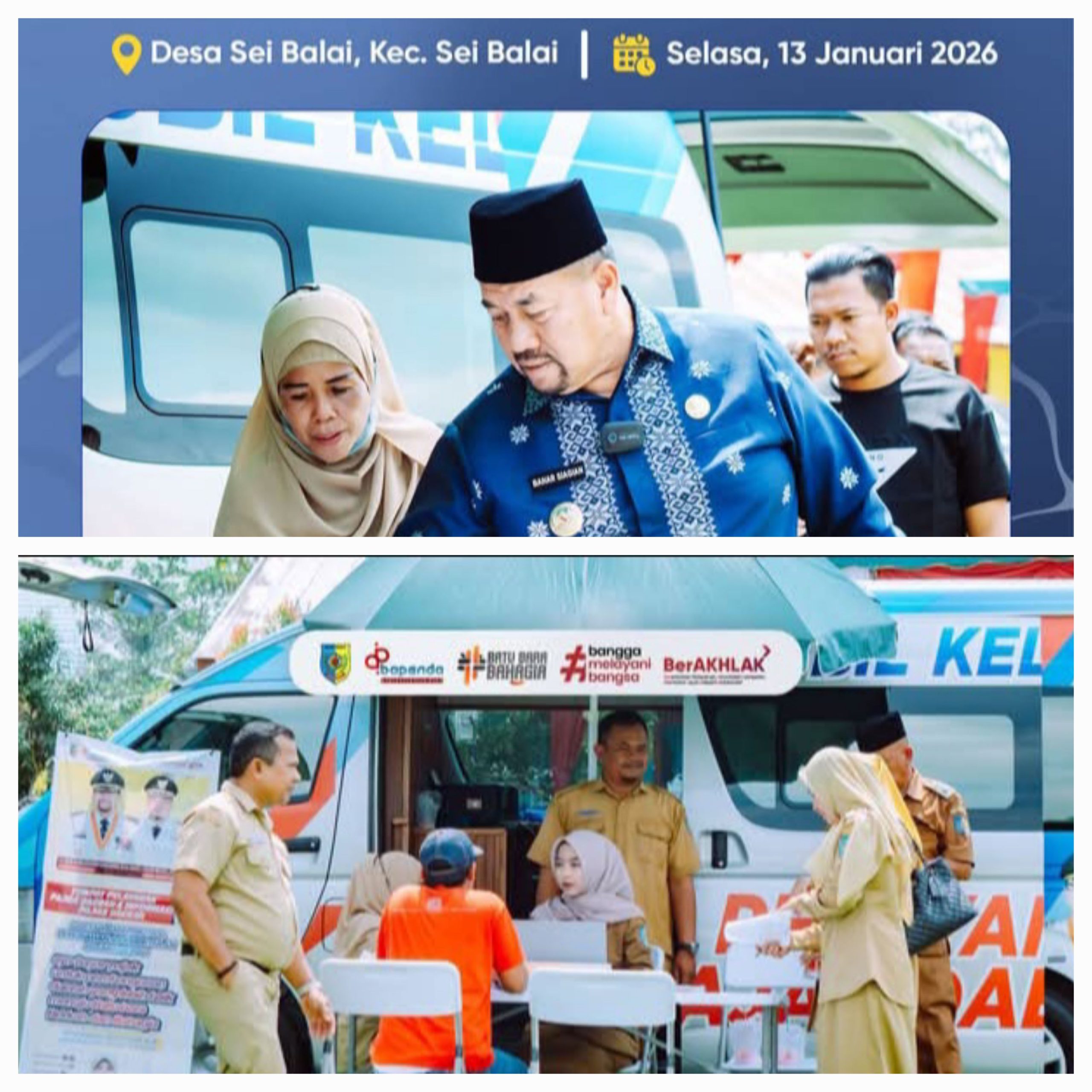 Pada kesempatan tersebut, Bupati Batu Bara, Bapak H. Baharuddin Siagian, SH., M.Si., bersama beberapa Kepala OPD, meninjau langsung pelaksanaan program layanan ini. Sebagai tuan rumah, Camat Sei Balai beserta seluruh kepala desa dan lurah di wilayahnya turut hadir dalam acara tersebut.