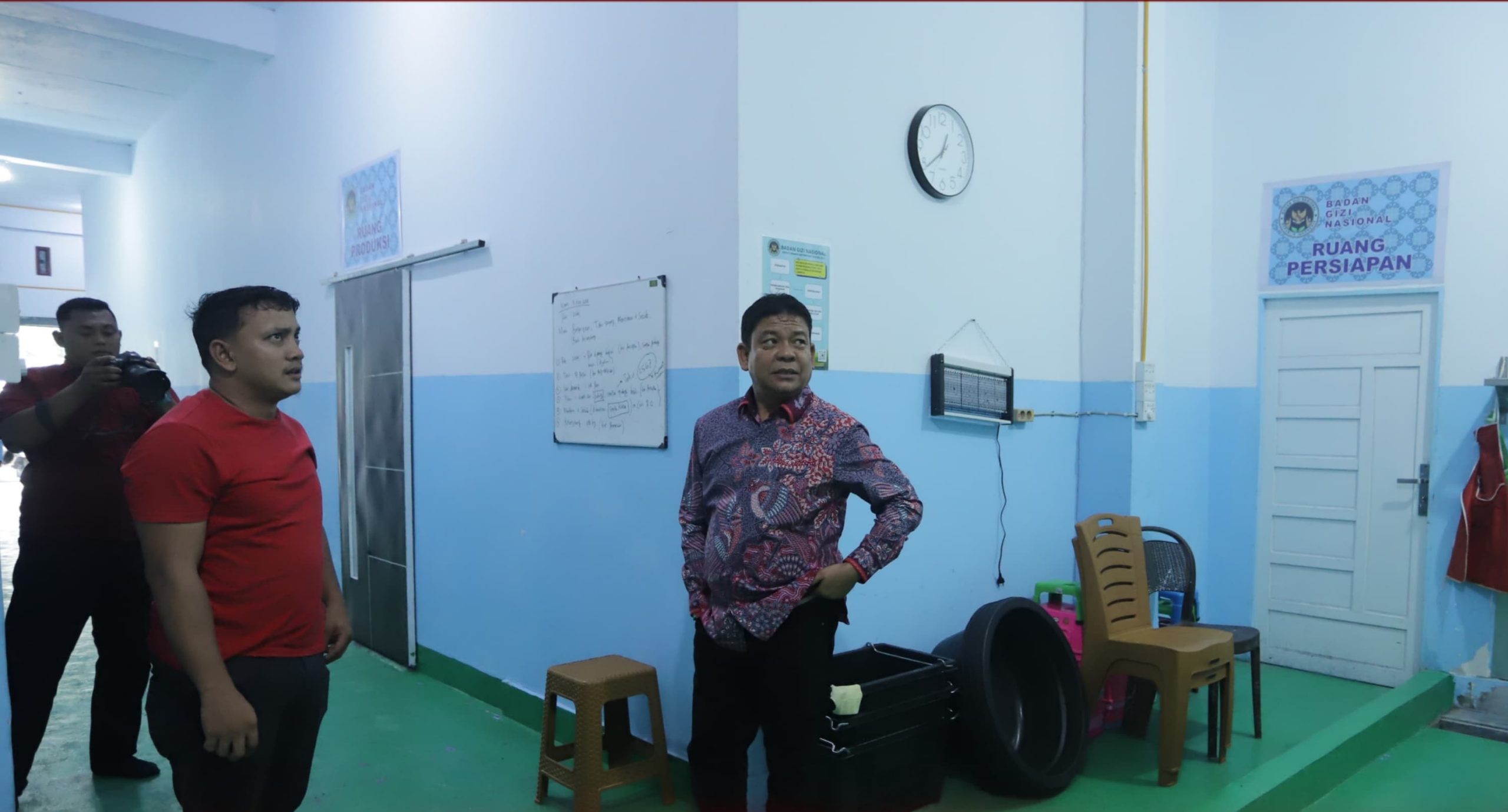 Hal ini turut membuktikan bahwa Pemkab Rohul ikut andil dan melaksanakan program Pemerintah Pusat, Setiba di lokasi sekitar pukul 13.20 WIB, Wabup langsung meninjau dapur utama, ruang penyimpanan, serta proses pengolahan makanan.