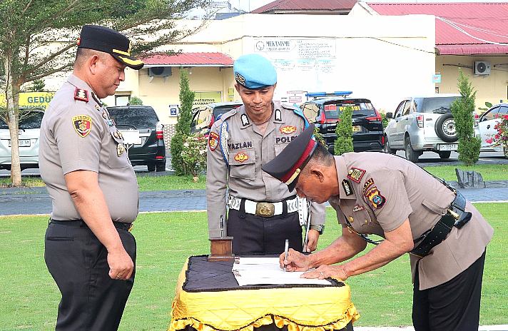 Batu Bara, Kapolres Batu Bara, AKBP Doly Nelson H.H. Nainggolan, memimpin langsung upacara serah terima jabatan (sertijab) Kapolsek Talawi dan Kasi Propam Polres Batu Bara yang dilaksanakan pada Rabu (16/04/2026) pukul 08.00 WIB di Mako Polres Batu Bara.