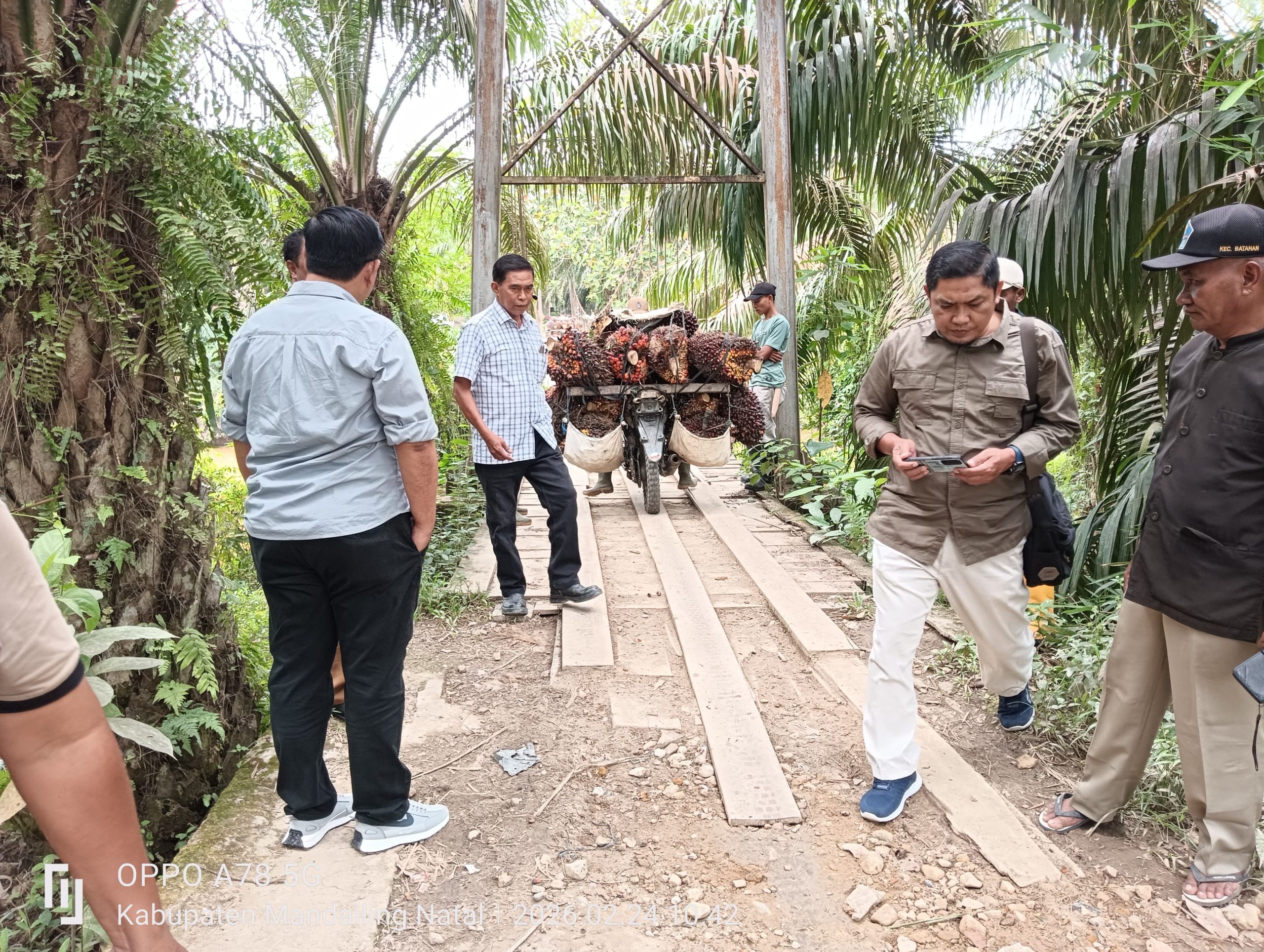 Pihak Manajer Kebun Plasma PTPN4 Madina Regional II Bersama Konsultan dari Bagian Teknik dan Pengolahan Kantor Regional II Beserta Rombongan, Tinjau Kelayakan dan Ketahanan Jembatan Gantung di Desa Batu Sondat, Kecamatan Batahan, Kabupaten Mandailing Natal (Madina) Provinsi Sumatera Utara, Selasa 24 Februari 2026.