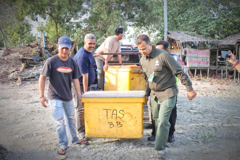 Di lokasi tersebut, petugas menemukan tiga fiber besar berisi Belangkas di dalam gudang, serta satu fiber lainnya yang tengah dilangsir menggunakan becak barang oleh tersangka lain. Total barang bukti yang diamankan mencapai 300 ekor Belangkas dan satu unit becak barang.