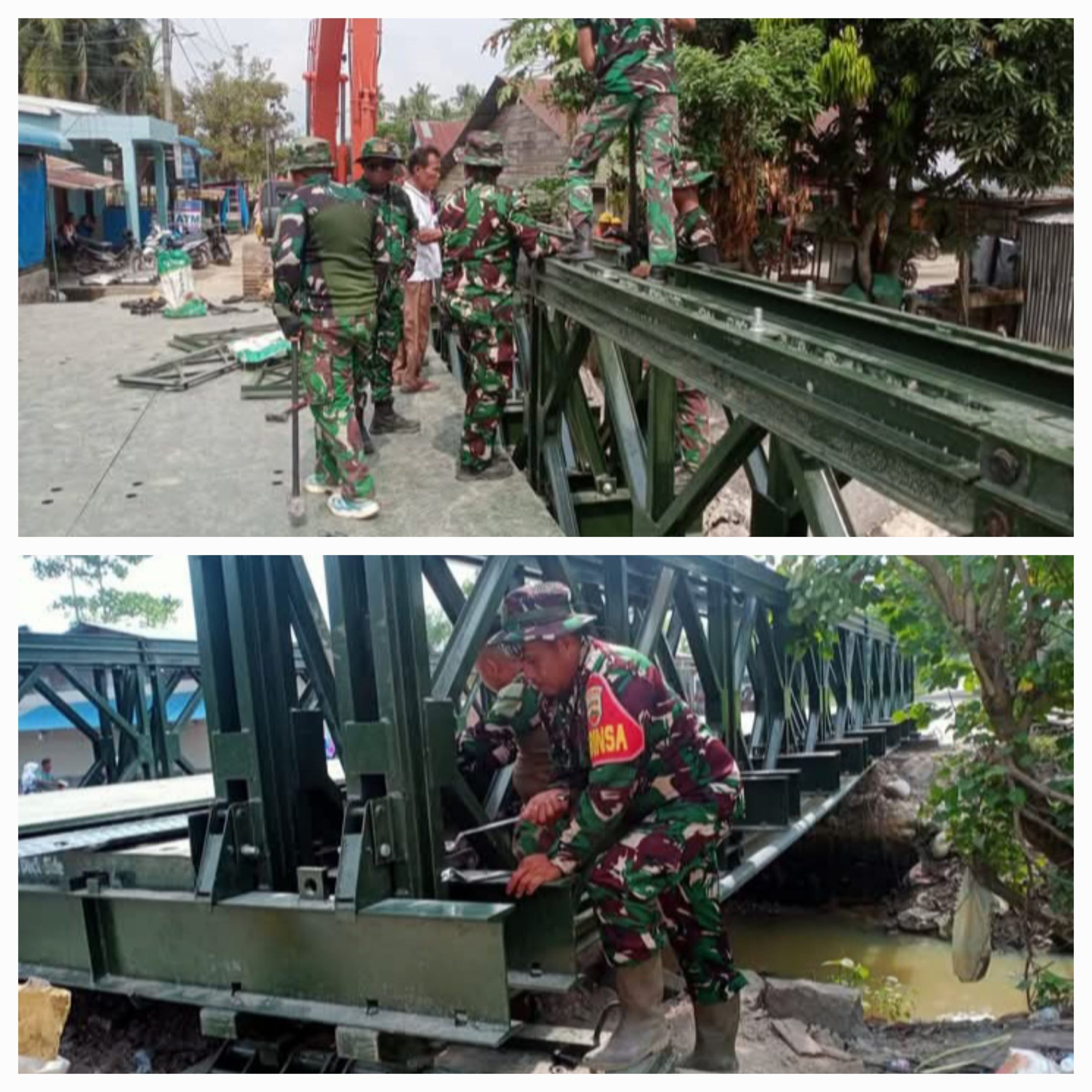 Personil Kodim 0208/Asahan Tak Kenal Lelah Lakukan Percepatan Pembangunan Jembatan Modular