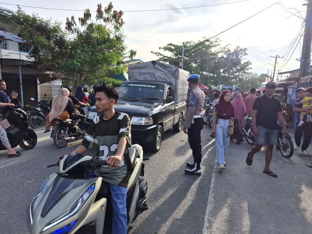 IPDA BZ Damanik menegaskan agar personel yang telah tersprint melaksanakan pengaturan lalu lintas secara intensif di sekitar lokasi pasar tumpah. Langkah tersebut dinilai penting guna mencegah terjadinya kemacetan, mengingat aktivitas masyarakat yang meningkat di kawasan tersebut.