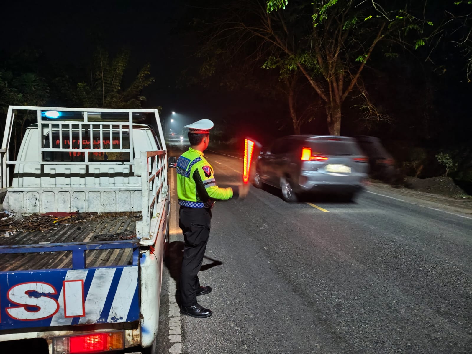 Patroli blue light malam ini bertujuan untuk mengatur arus lalu lintas di lokasi rawan laka dan macet, serta melakukan penindakan kasat mata terhadap pelanggar yang tidak mematuhi peraturan berlalu lintas.
