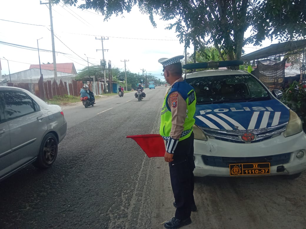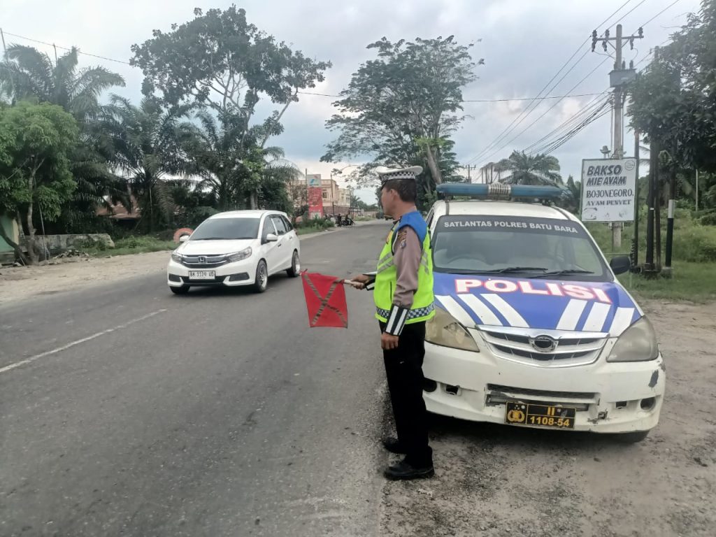 Sat Lantas Polres Batu Bara Lakukan Patroli Kibas Bendera, Jaga Keamanan di Jalinsum