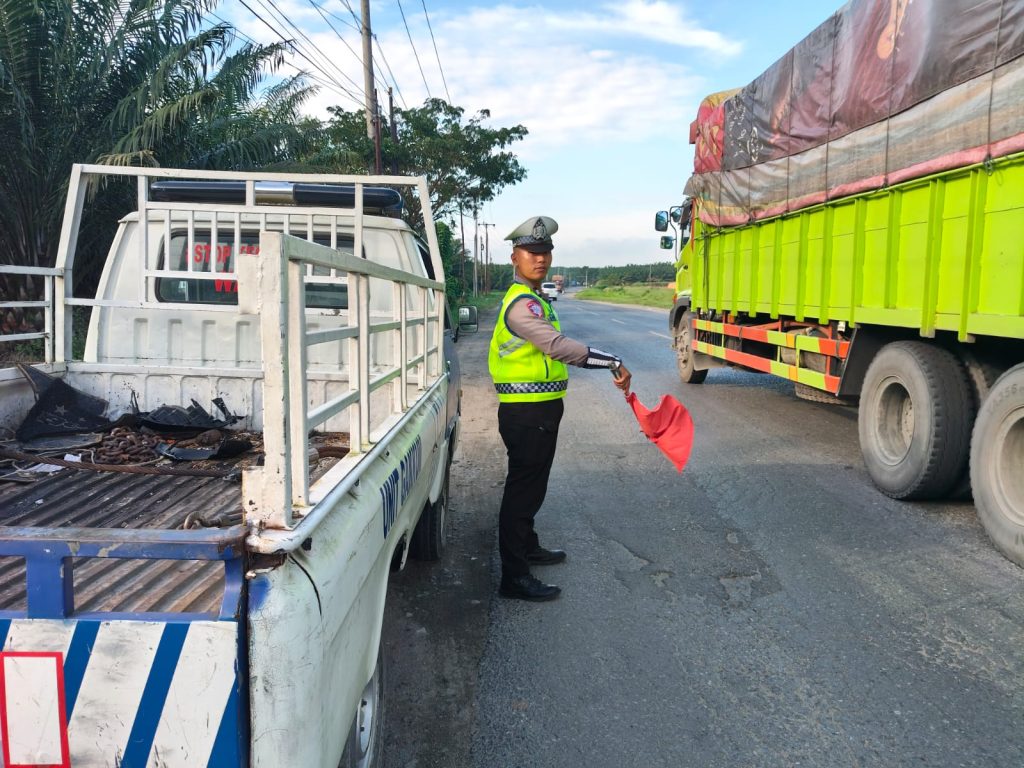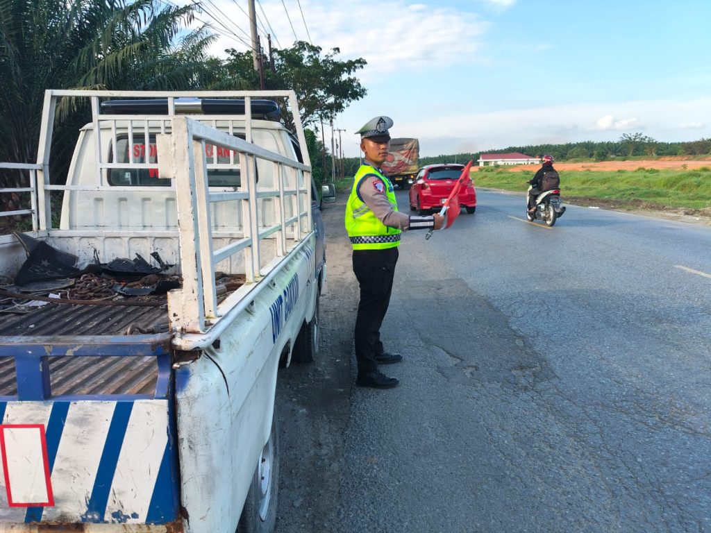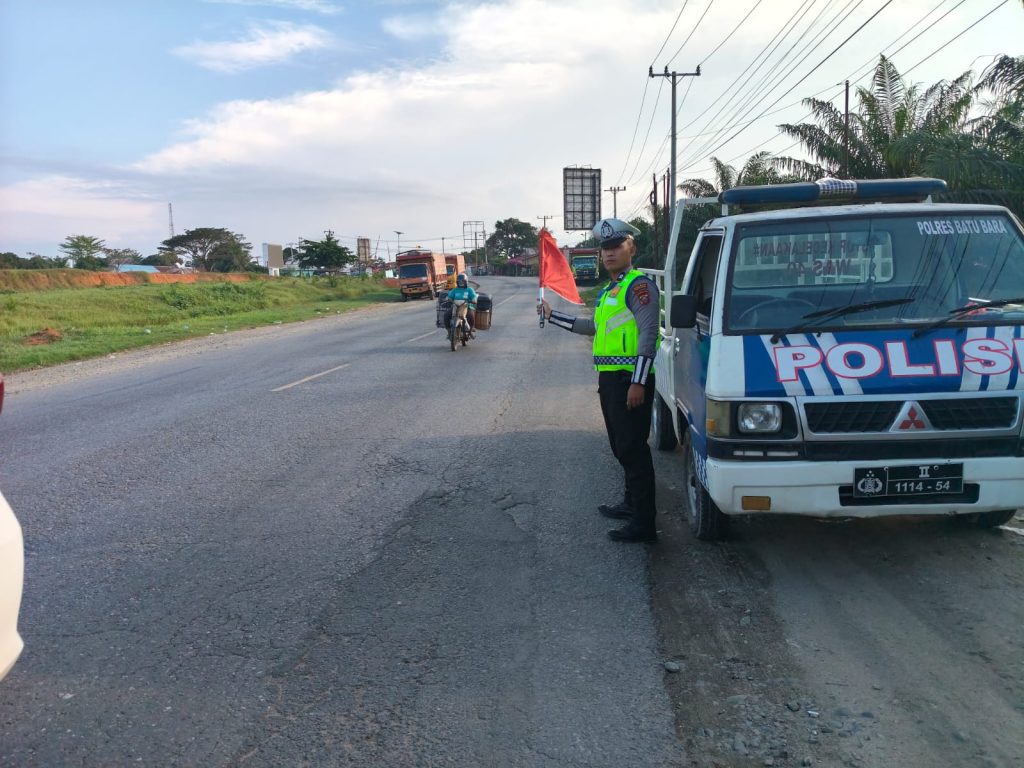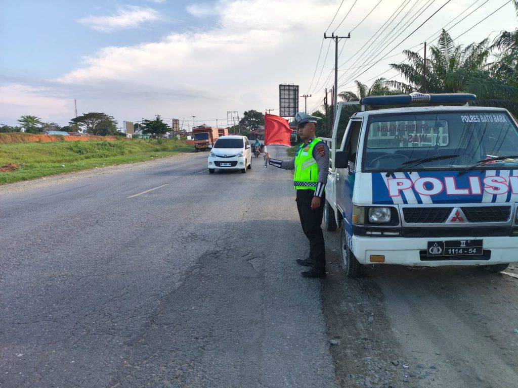 Sat Lantas Polres Batu Bara Perkuat Keamanan Jalinsum Lewat Patroli dan Kibas Bendera