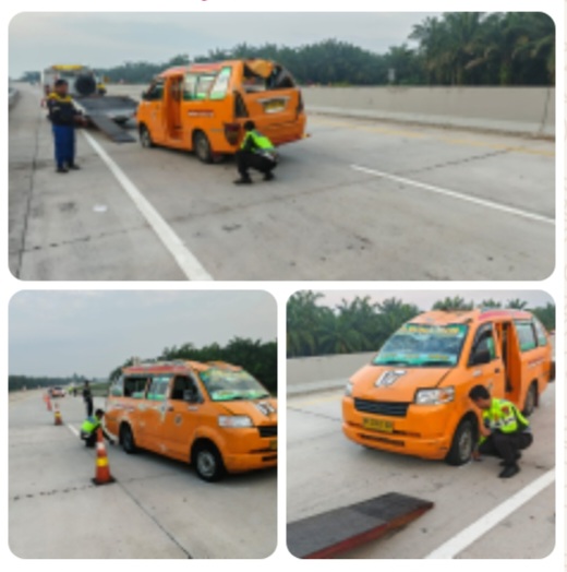 Terjadi Laka Tunggal Sebuah Mini Bus Jenis Angkot Di Jalan Tol Indrapura – Kisaran KM 113+500