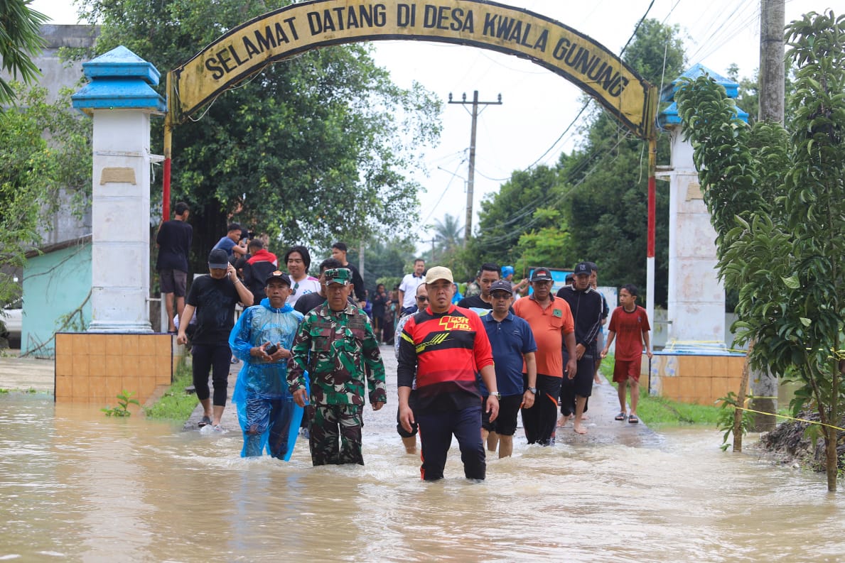 Peninjauan dimulai dari Desa Kuala Gunung, Desa Empat Negeri, Desa Simpang Dolok dan Air Hitam dengan ketinggian air rata-rata mencapai 80 cm atau setinggi pinggang dewasa yang merendam ribuan rumah dan ratusan hektar sawah terendam.