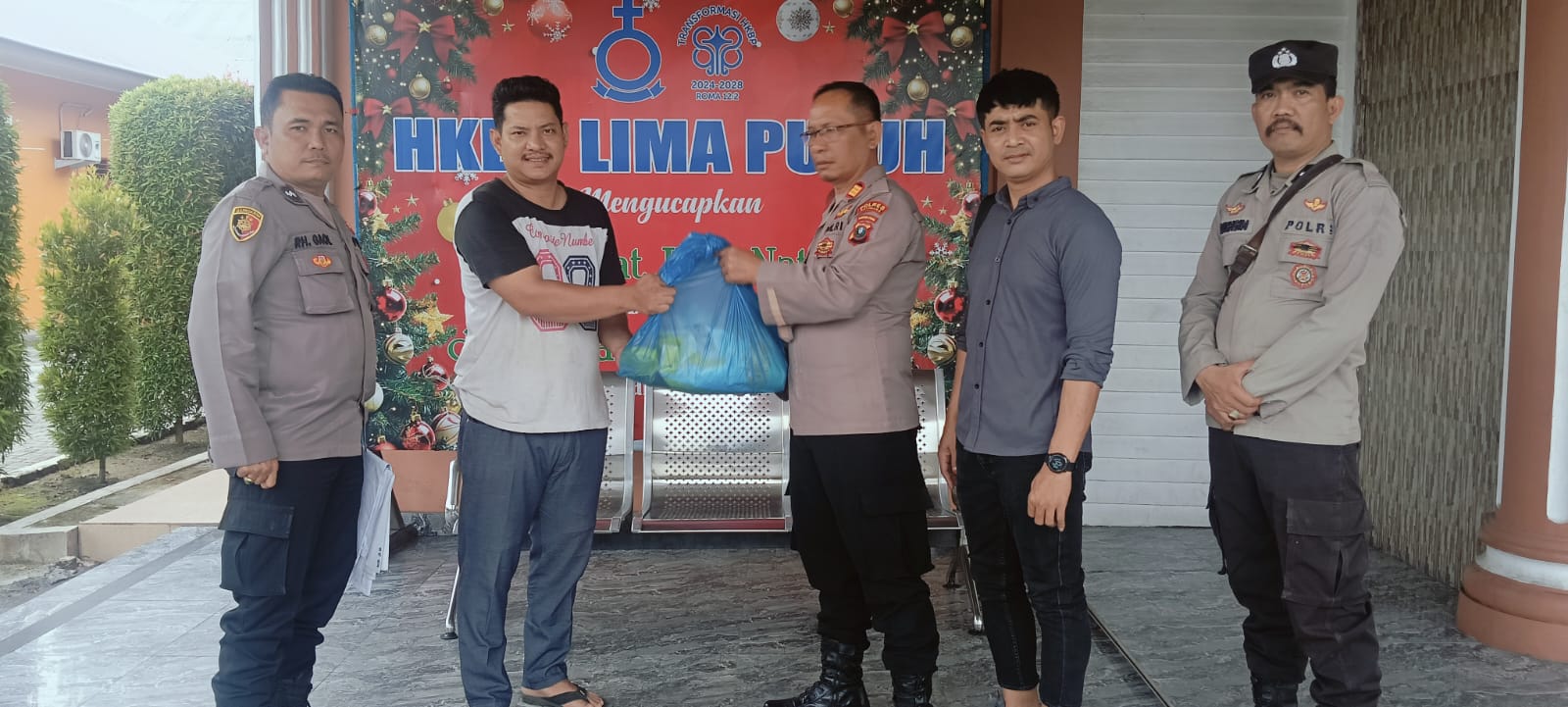 ​Hal serupa dilakukan personel Polsek Lima Puluh di Gereja HKBP Kelurahan Lima Puluh Kota. IPDA Yulfian Tarigan, IPDA Wira Hidayat SH, AIPTU R.H. Hutagaol SH, dan AIPDA Mukshin membagikan paket sembako kepada warga, salah satunya kepada Bapak M. Sinaga (60) dan Zoel Damanik (40).