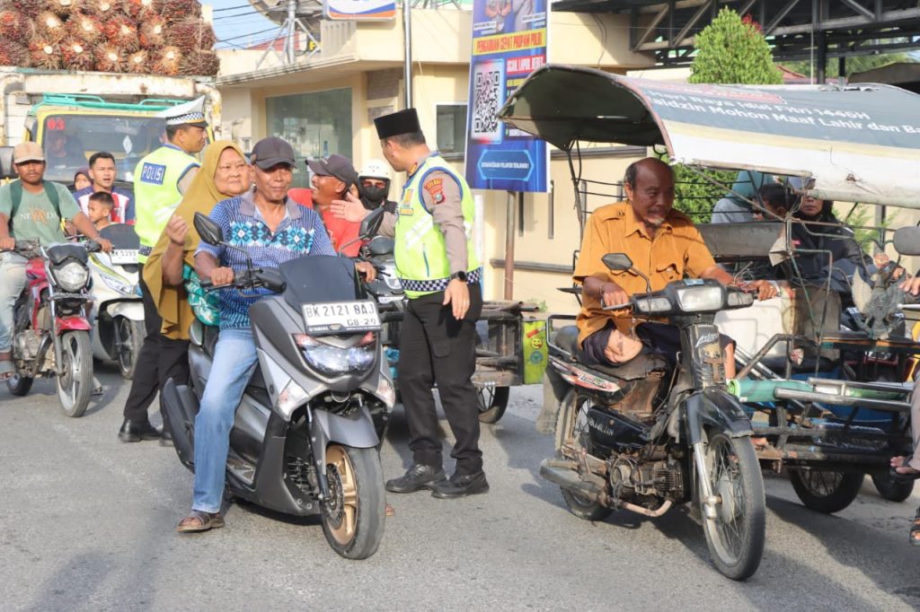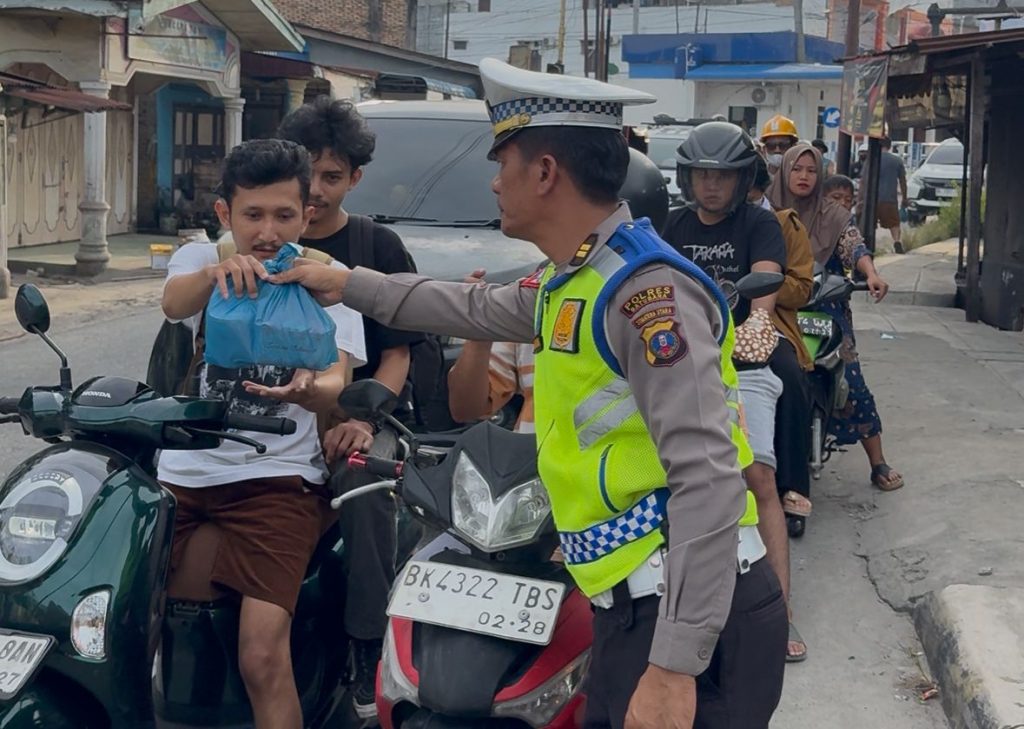 Selain berbagi takjil, personel Satlantas juga memberikan sosialisasi serta imbauan kepada pengendara agar selalu tertib berlalu lintas dan mematuhi peraturan demi keselamatan bersama.